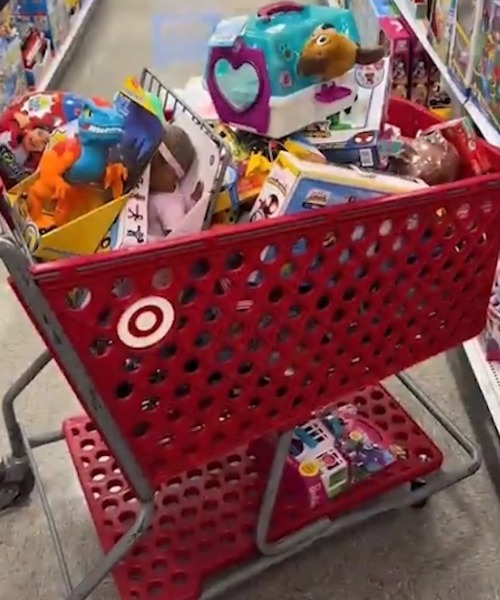 Так, за каждый выбранный для себя подарок 5-летней Сторми нужно наполнить тележку для пожертвований, которую звездная мама катит по магазину.