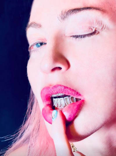 62-летняя певица, автор песен и режиссер в последнее время обожает менять образы: она примеряет яркие наряды и покрасила волосы в розовый цвет, хотя в течение всего карантина ходила с блондом и отросшими корнями.В очередной публикации подписчики увидели Мадонну в новом имидже: к яркому цвету волос и макияжу она добавила украшение для зубов – грилзы. Такие необычные предметы уже примеряли звездные коллеги исполнительницы: Кэти Перри в 2013 году на на премии MTV, Бейонсе в клипе Yonce, Майли Сайрус на множественных музыкальных концертах (даже призналась, что у нее целых 3 пары грилзов).